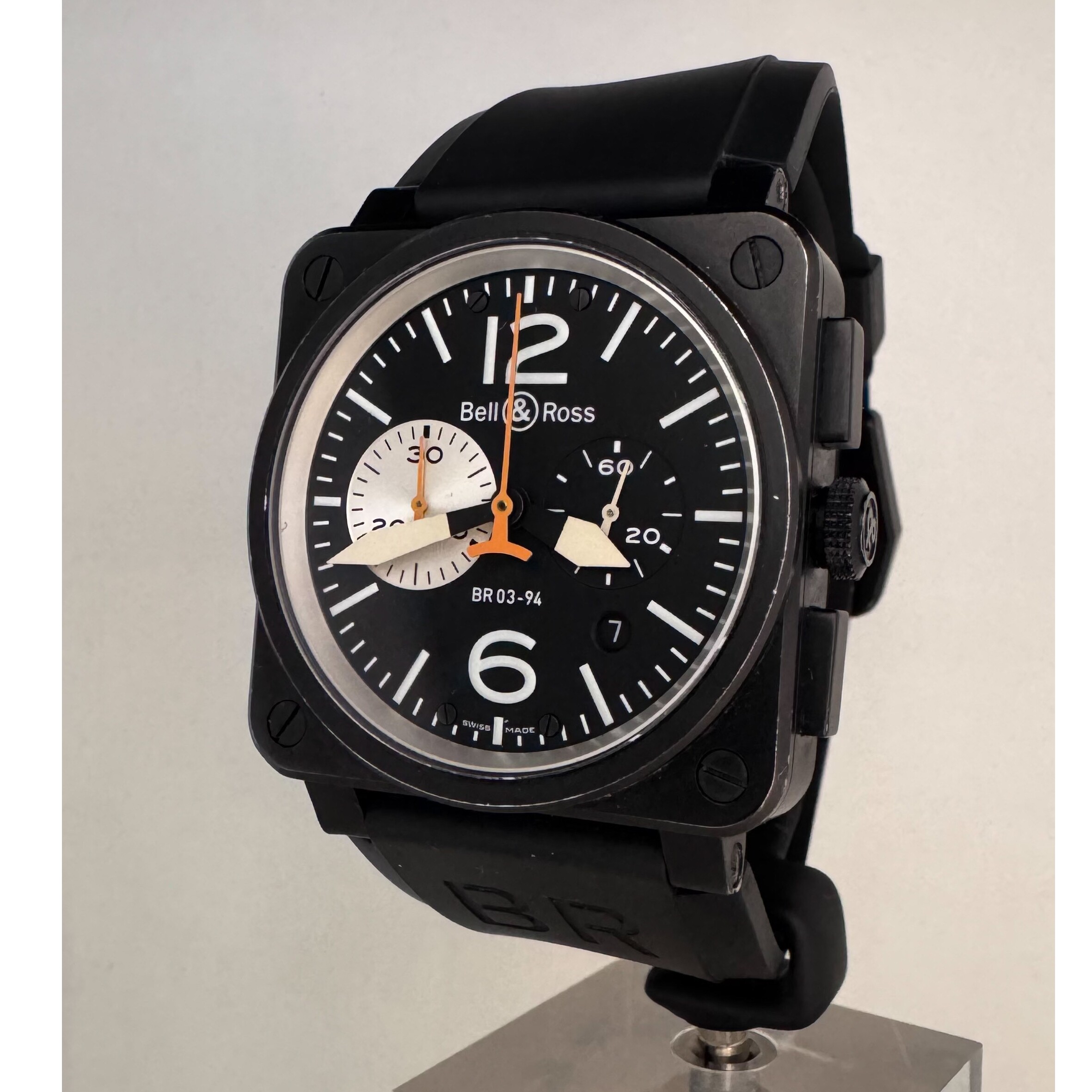 Berenger.fr vous présente montre d'occasion sur Marseille de la marque Bell & Ross modèle BR03-94 Chronographe en acier pvd noir de taille de boitier 42 mm, référence: BR03-94