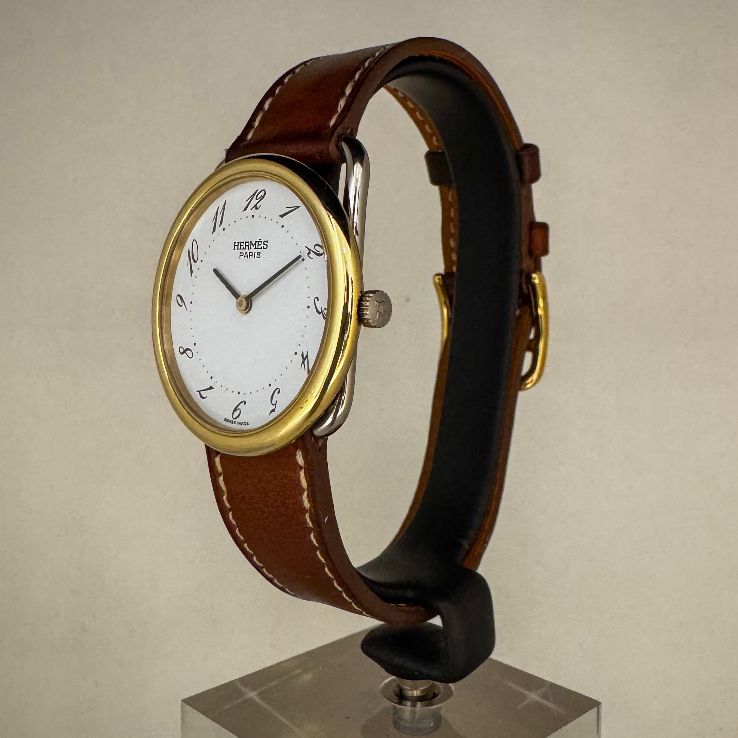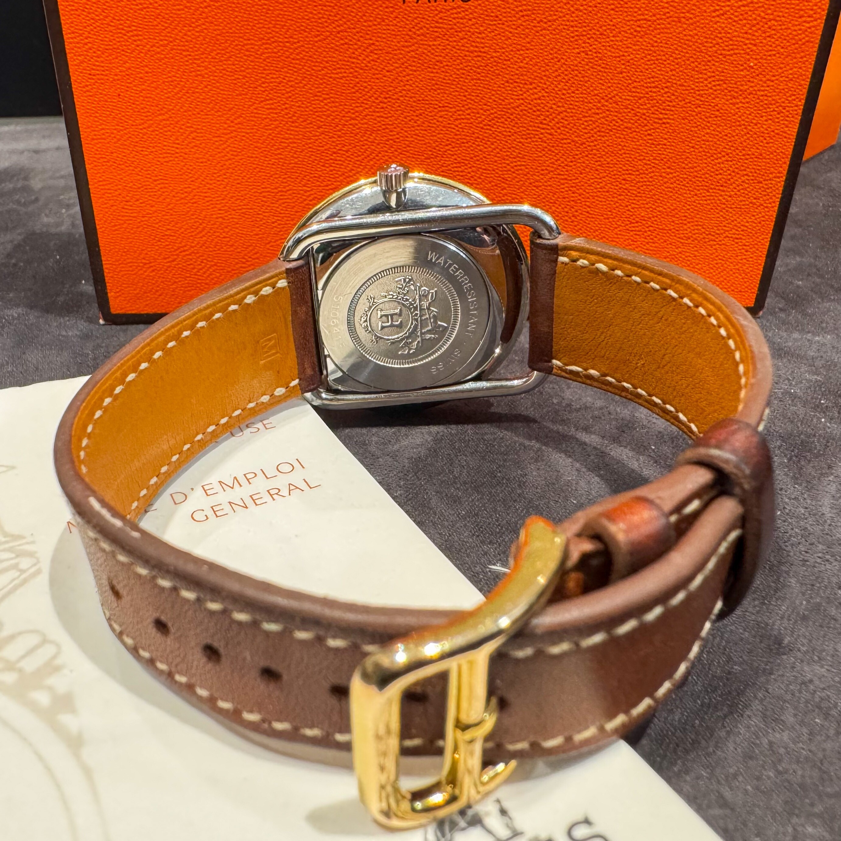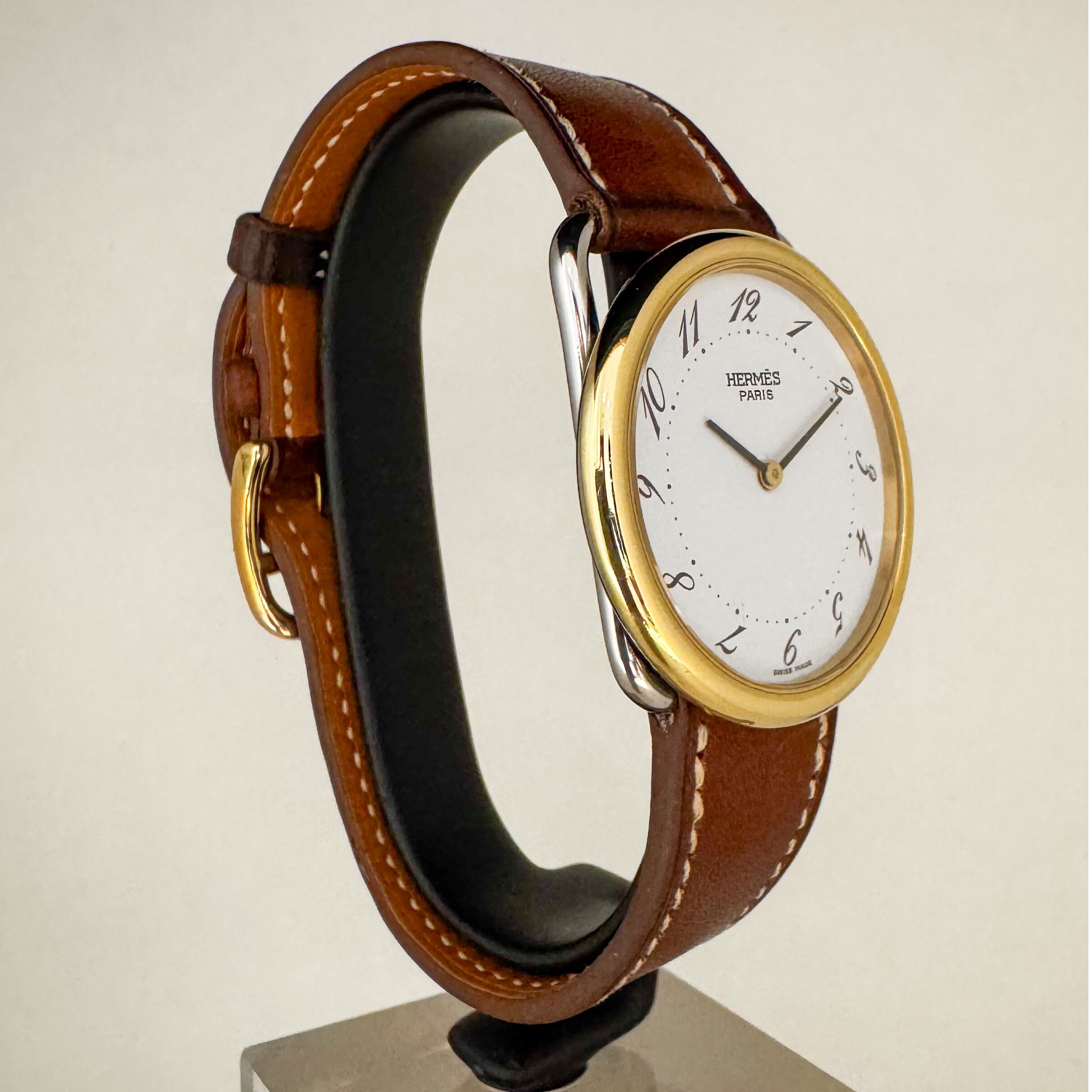 Berenger.fr vous présente montre d'occasion sur Marseille de la marque Hermès modèle Arceau en plaqué or et acier de taille de boitier 33mm.