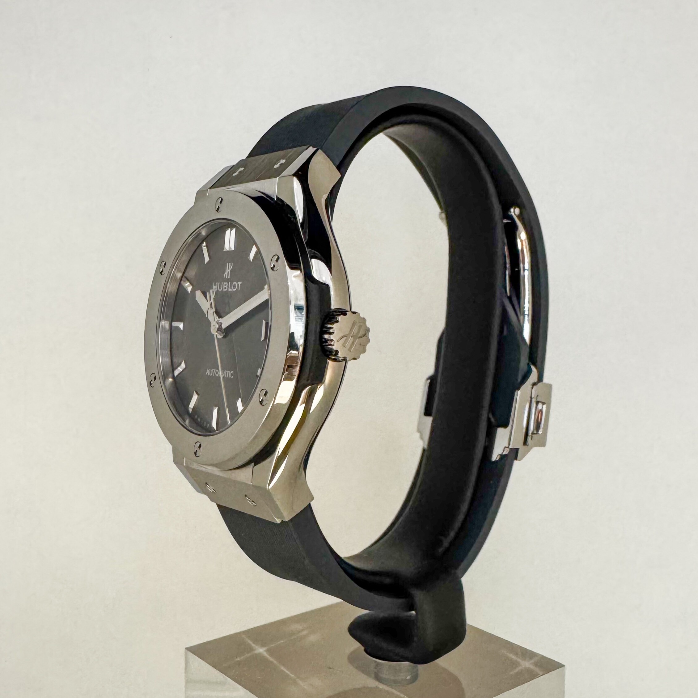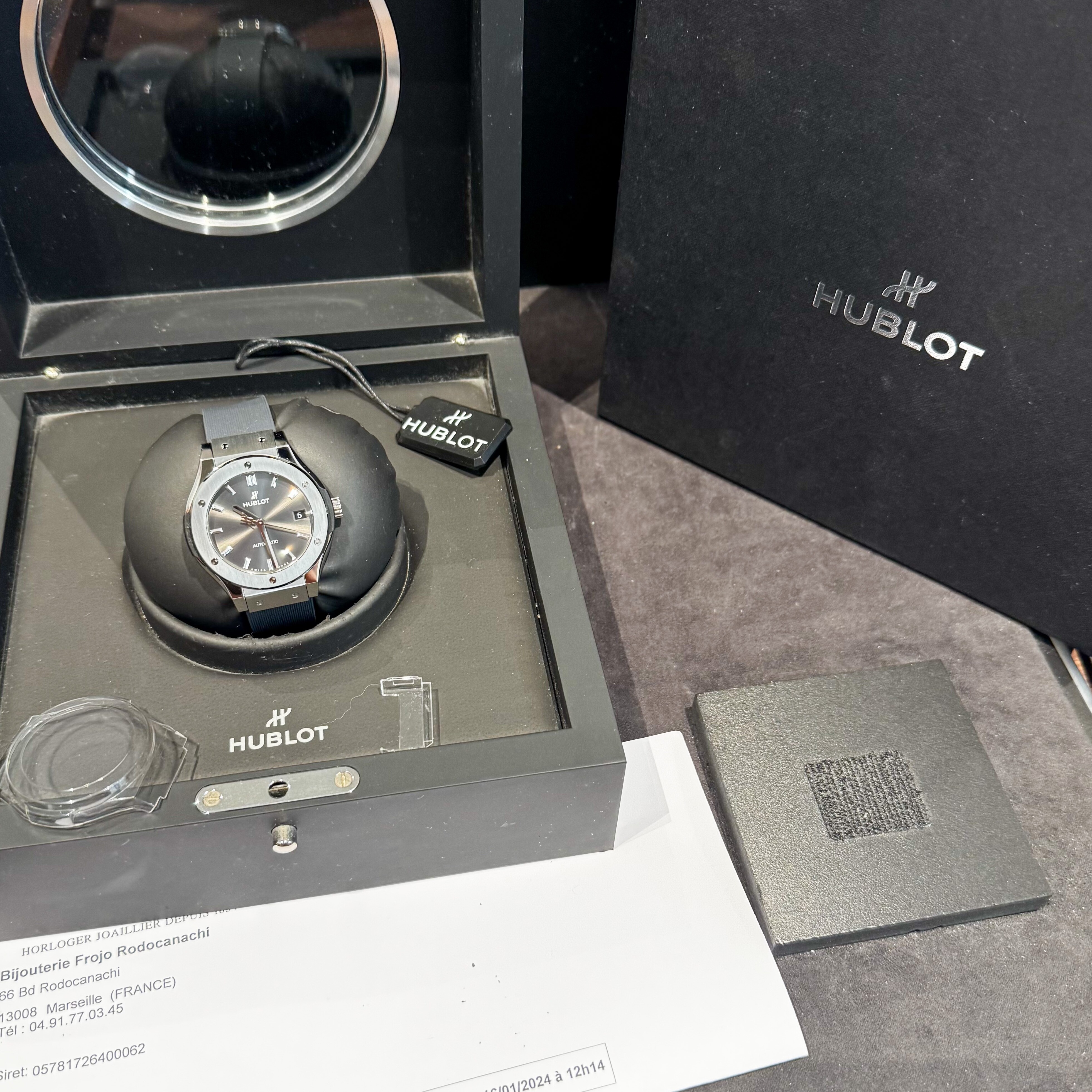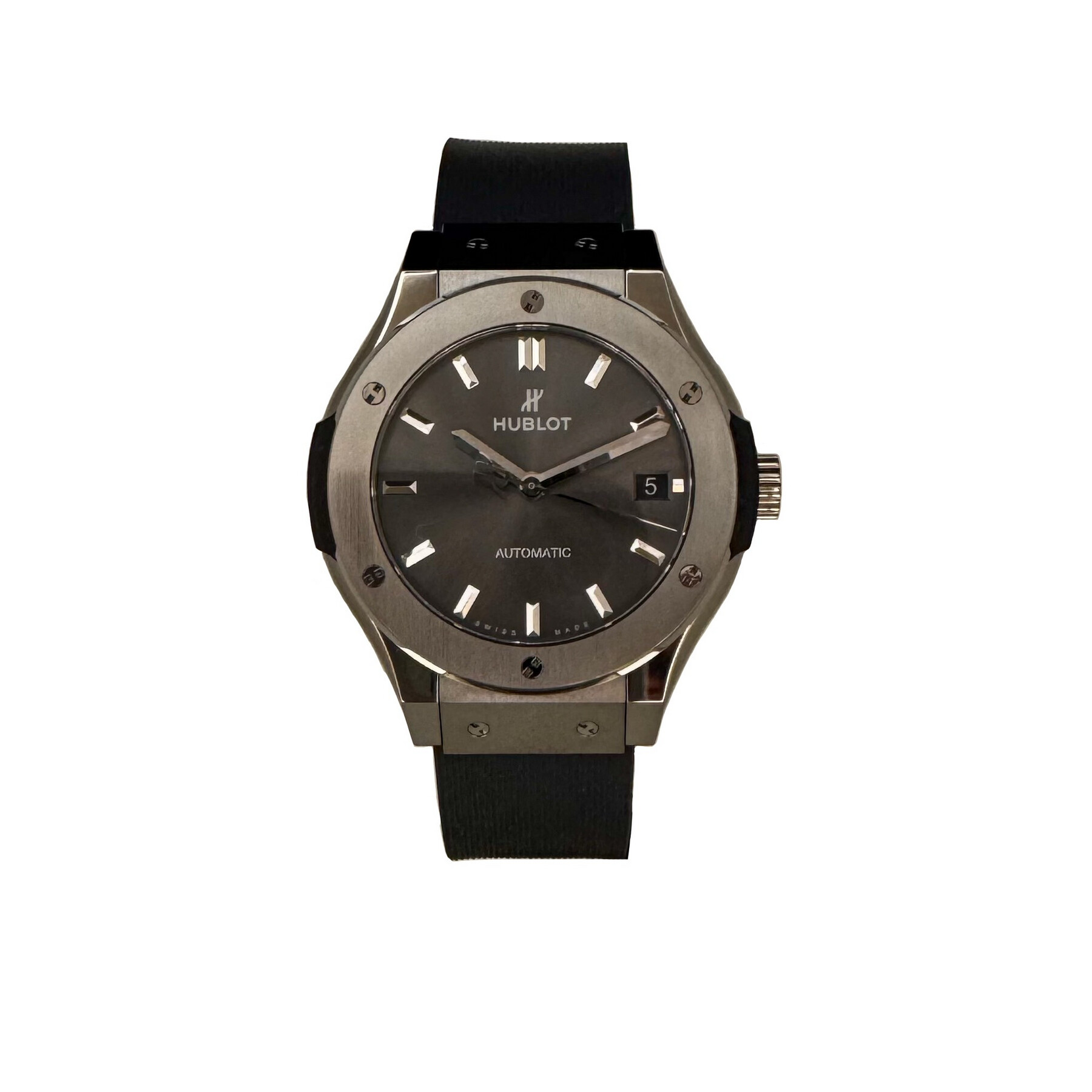 Berenger.fr vous présente montre d'occasion sur Marseille de la marque Hublot modèle Classic Fusion en titane de taille de boitier 38 mm, référence: 565.NX.7071.RX