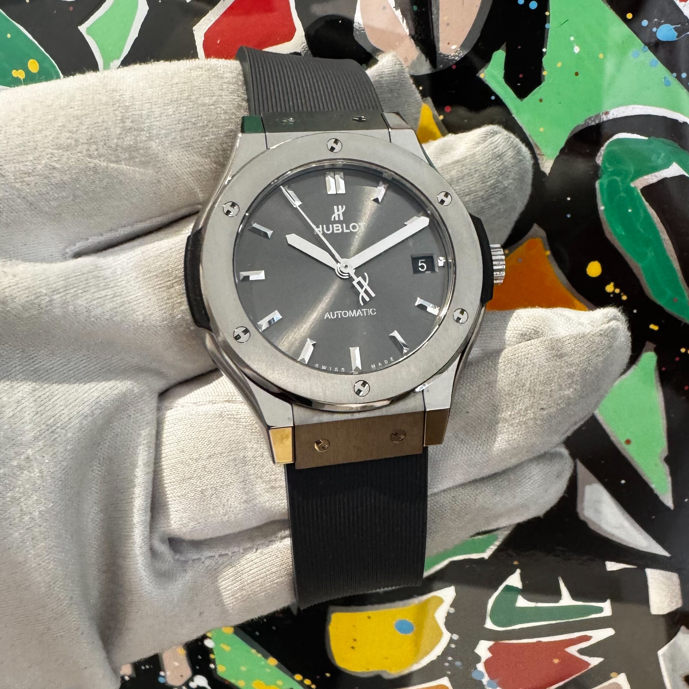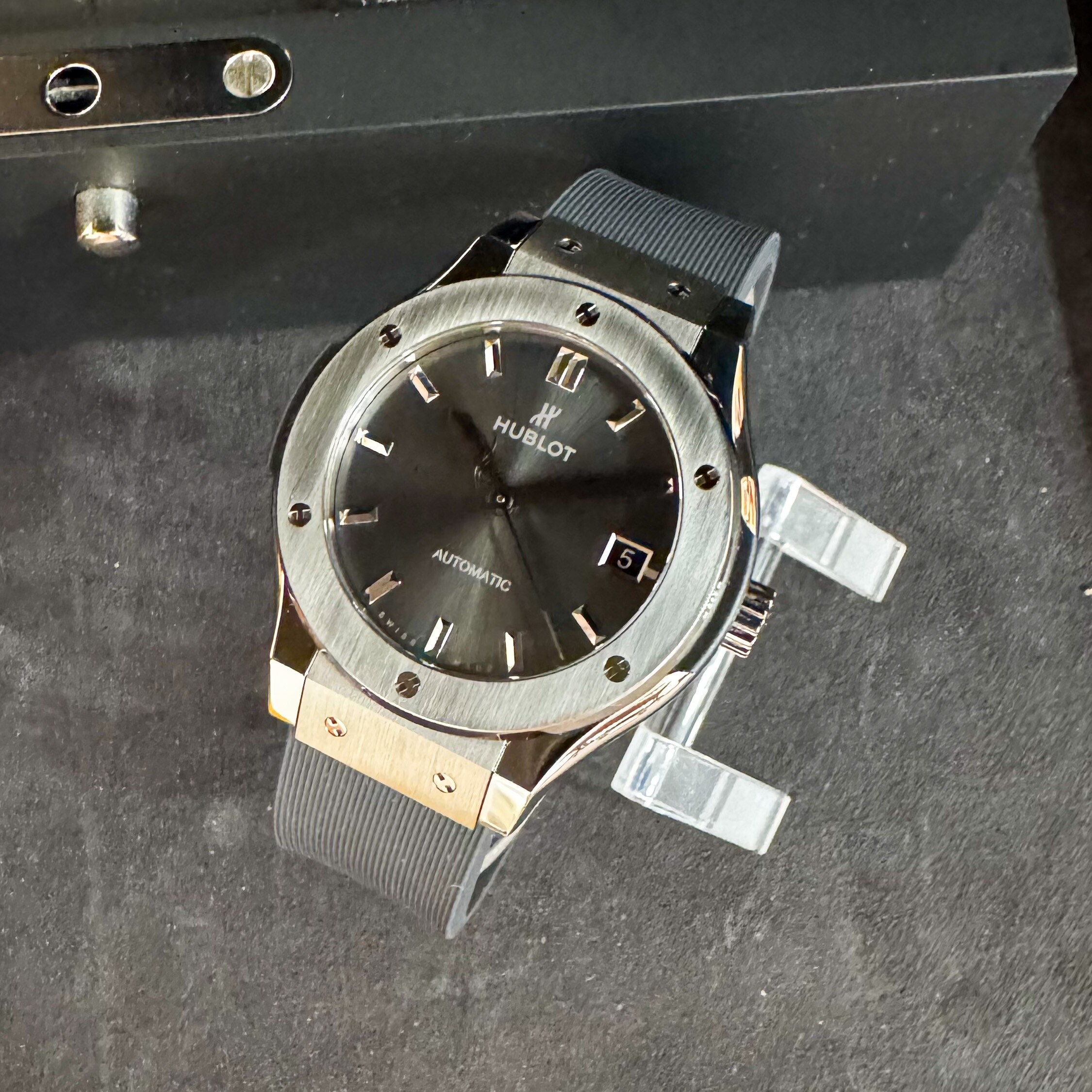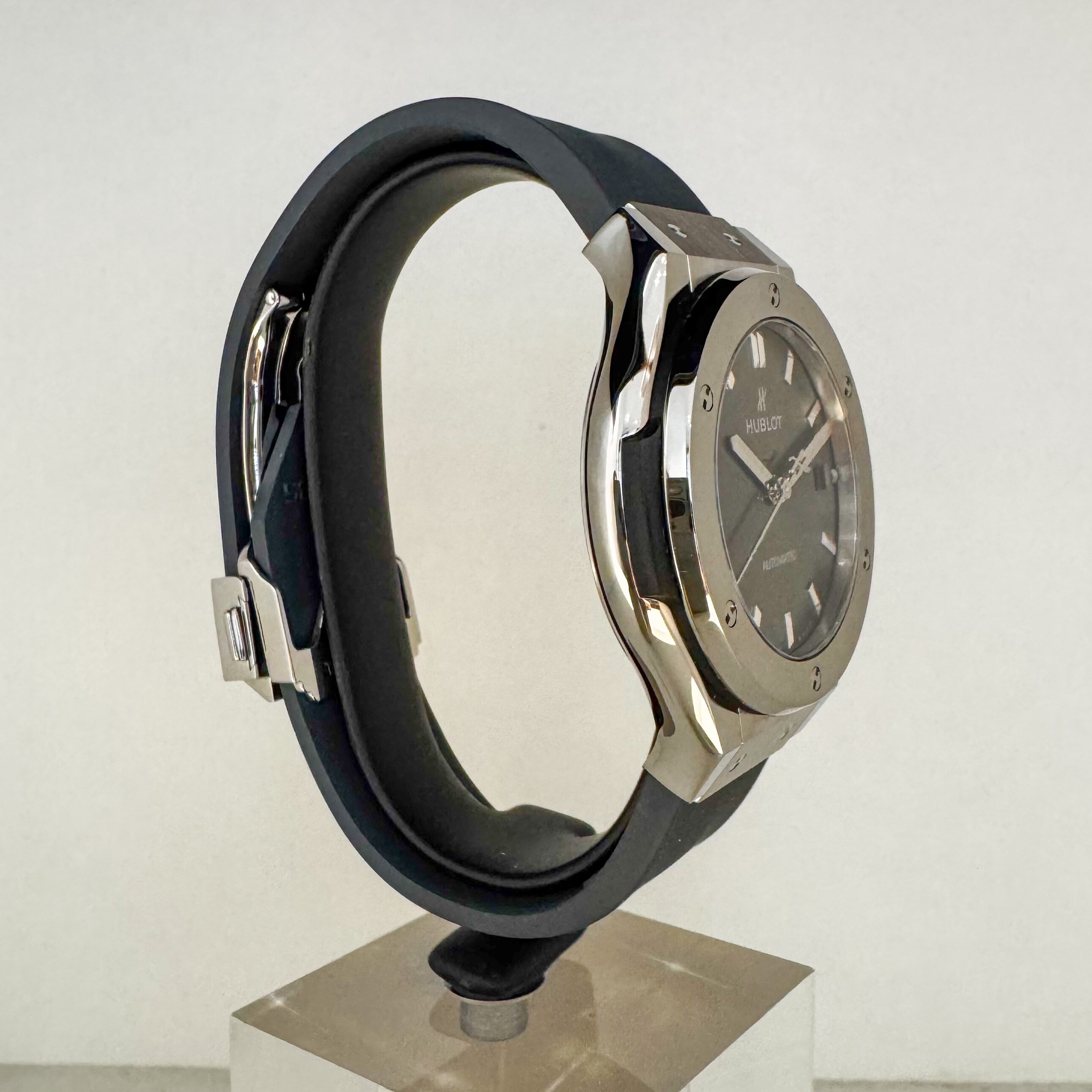 Berenger.fr vous présente montre d'occasion sur Marseille de la marque Hublot modèle Classic Fusion en titane de taille de boitier 38 mm, référence: 565.NX.7071.RX