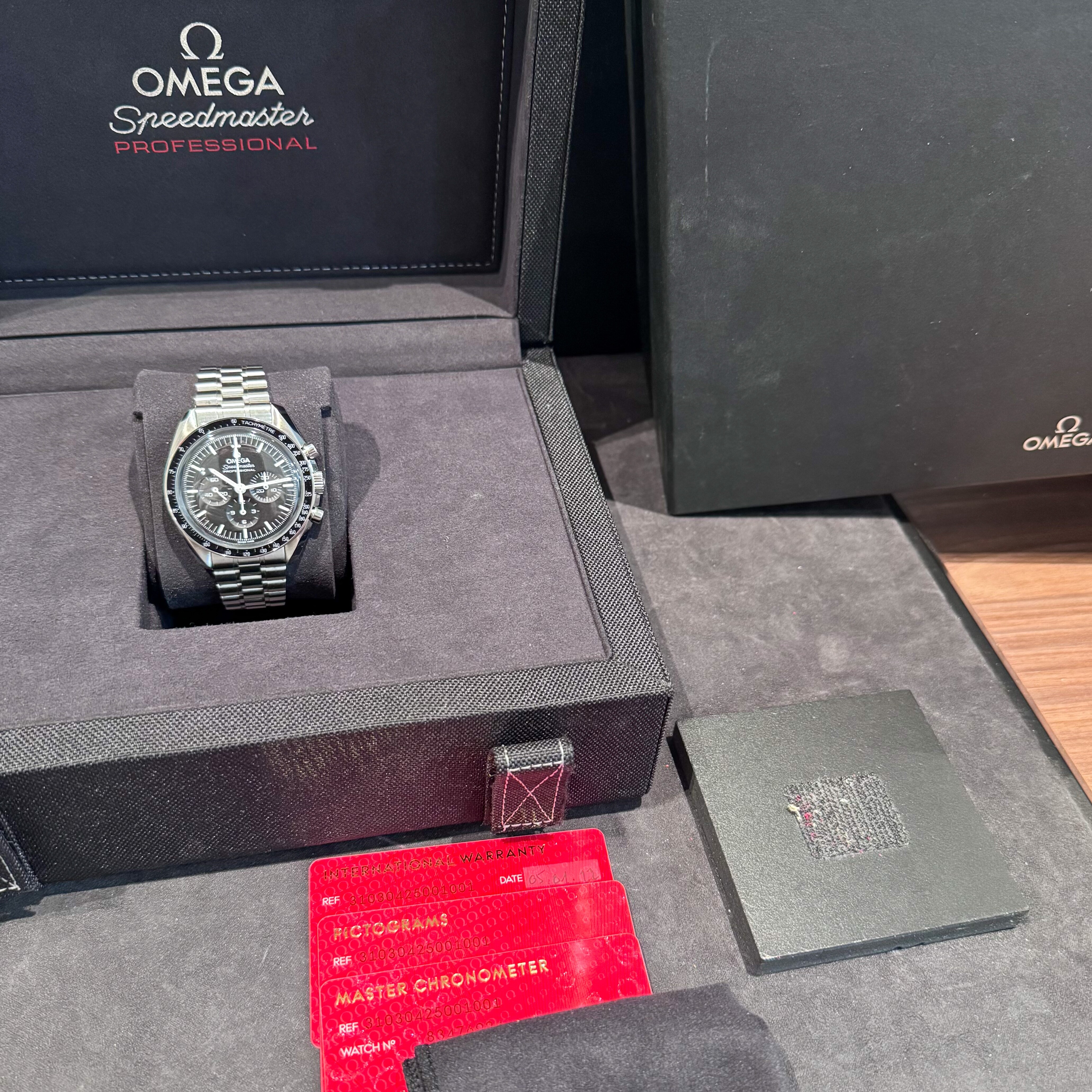 Elle est livrée avec sa boite et ses papiers Omega d'origine du 01/2022, garantie internationale Omega jusqu'au 01/2027.