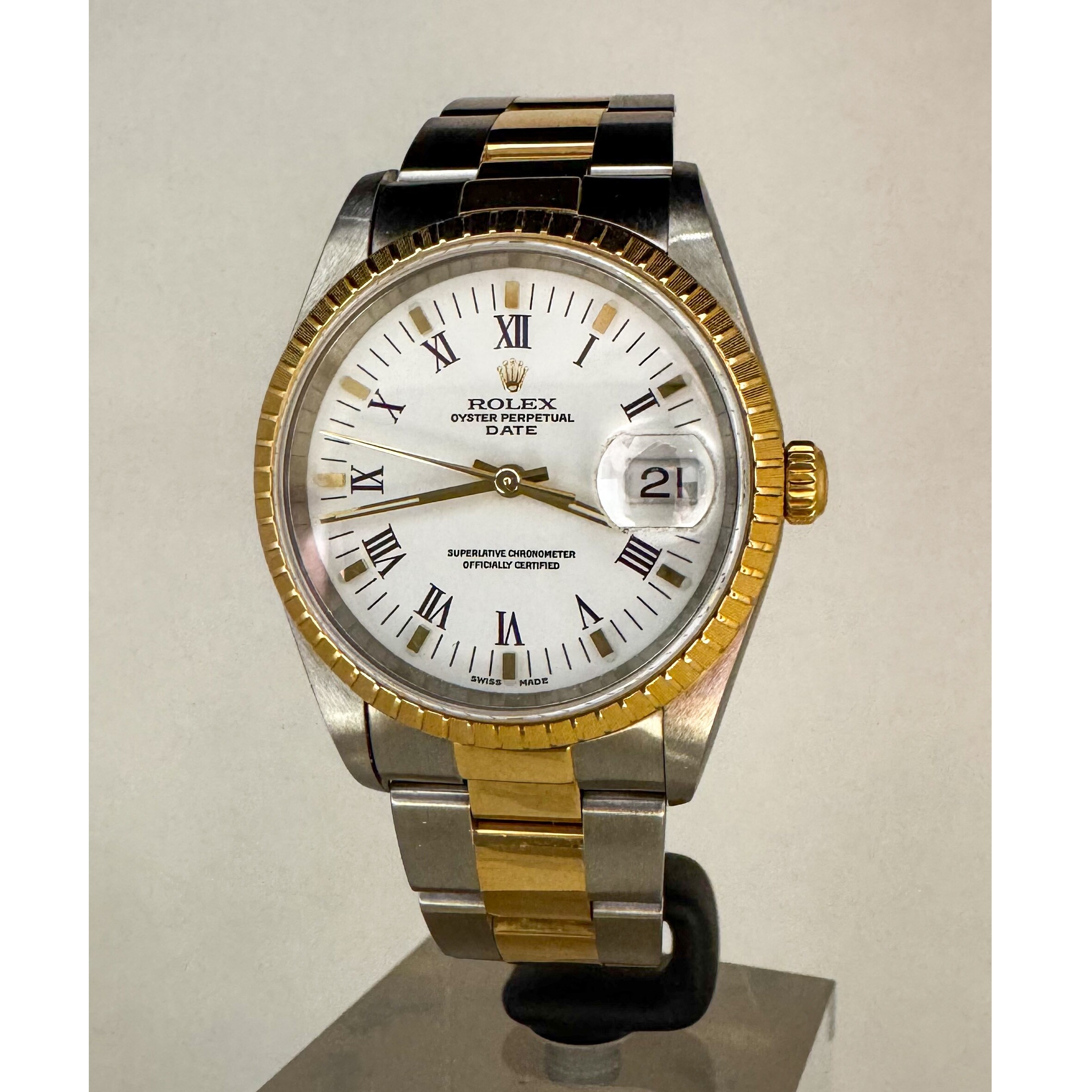 Berenger.fr vous présente montre d'occasion sur Marseille de la marque Rolex modèle Date en or et acier de taille de boitier 34 mm, référence: 15223.