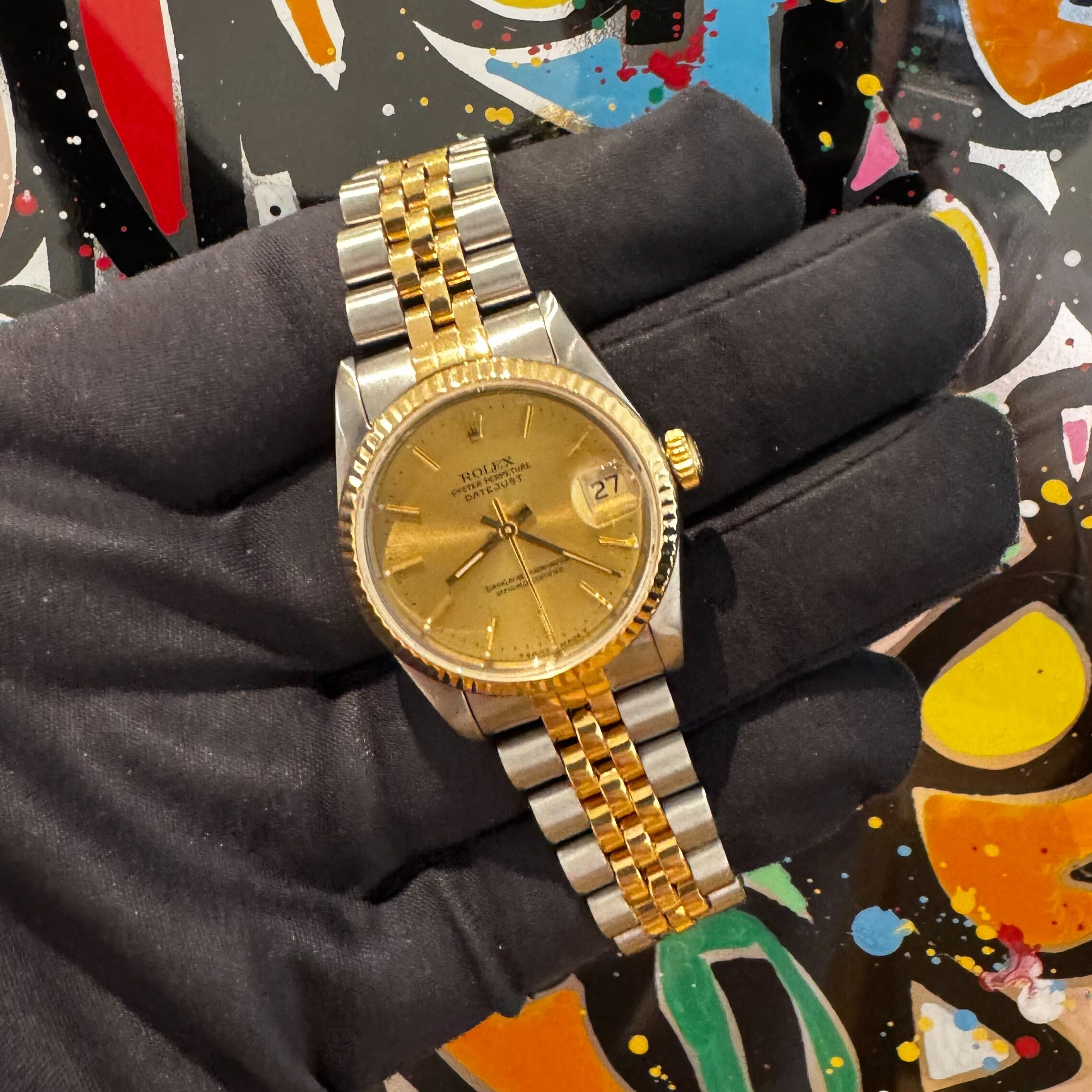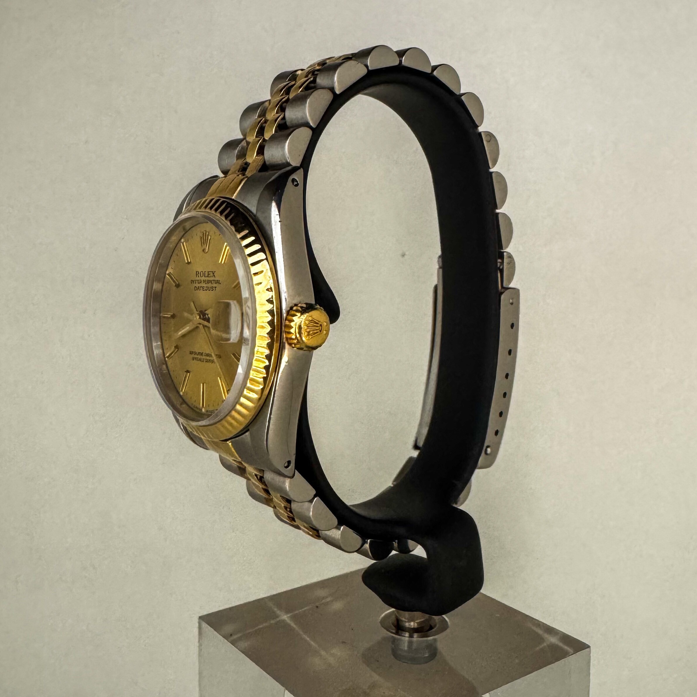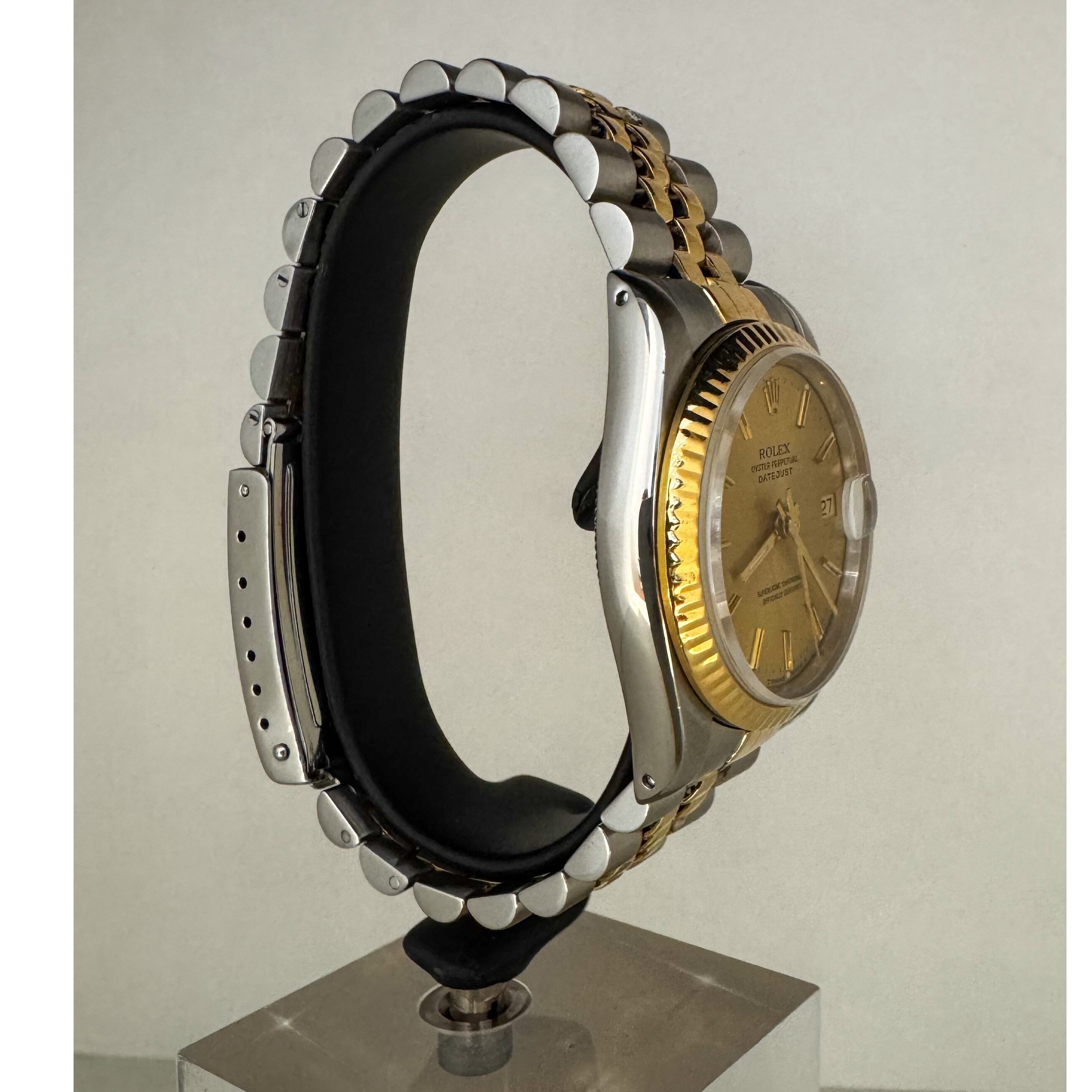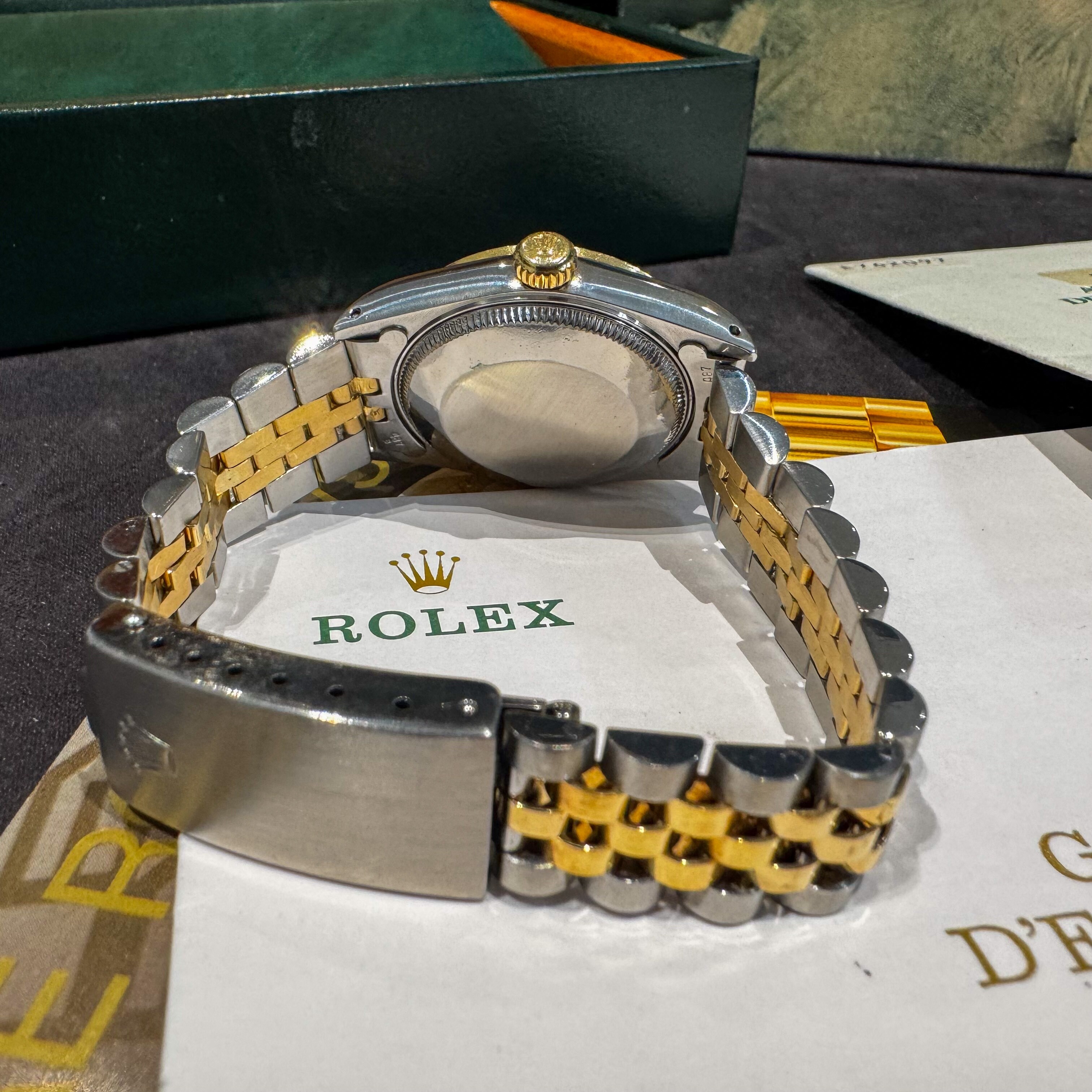 La montre est très bon état général sur son bracelet en or et acier jubilé Rolex d'origine.
