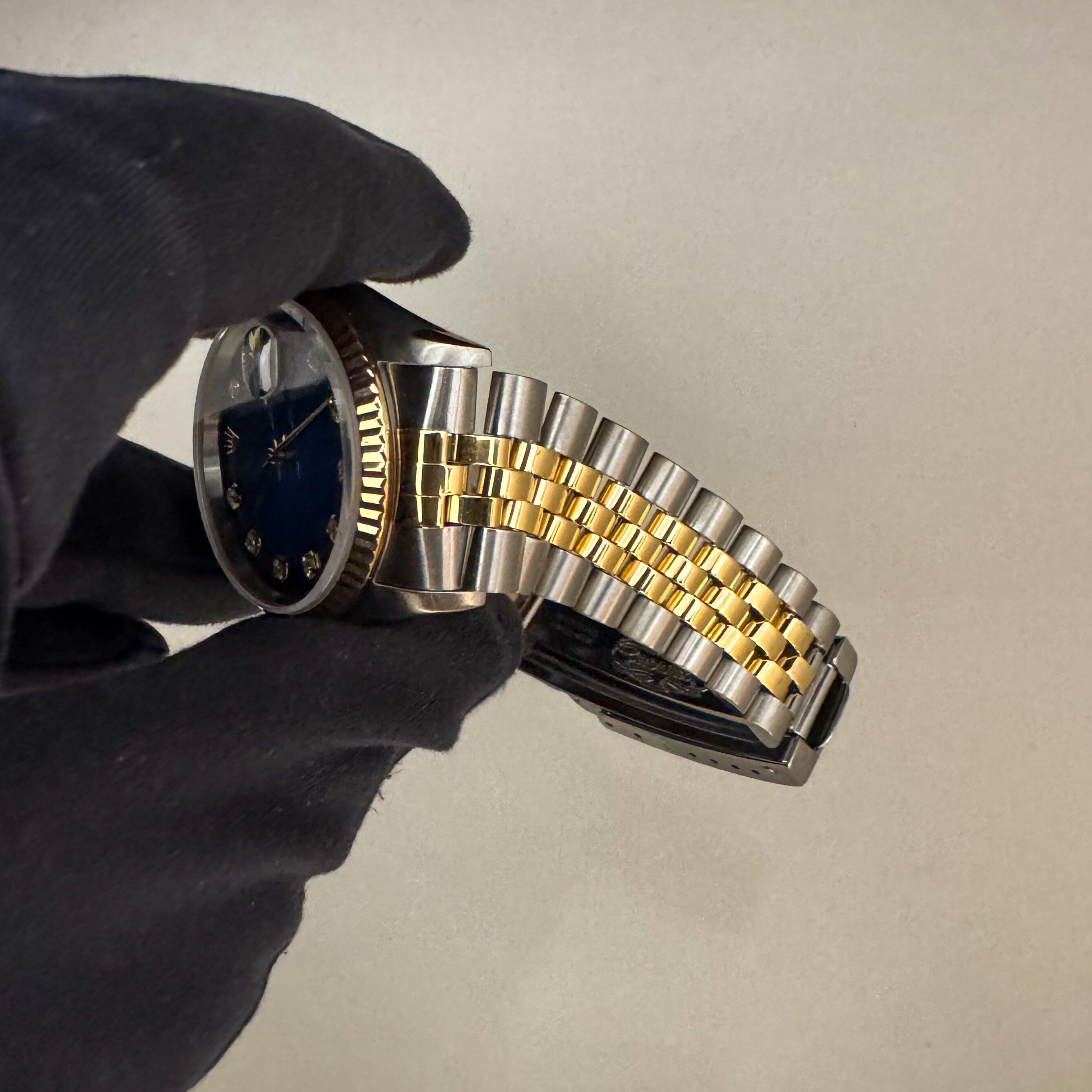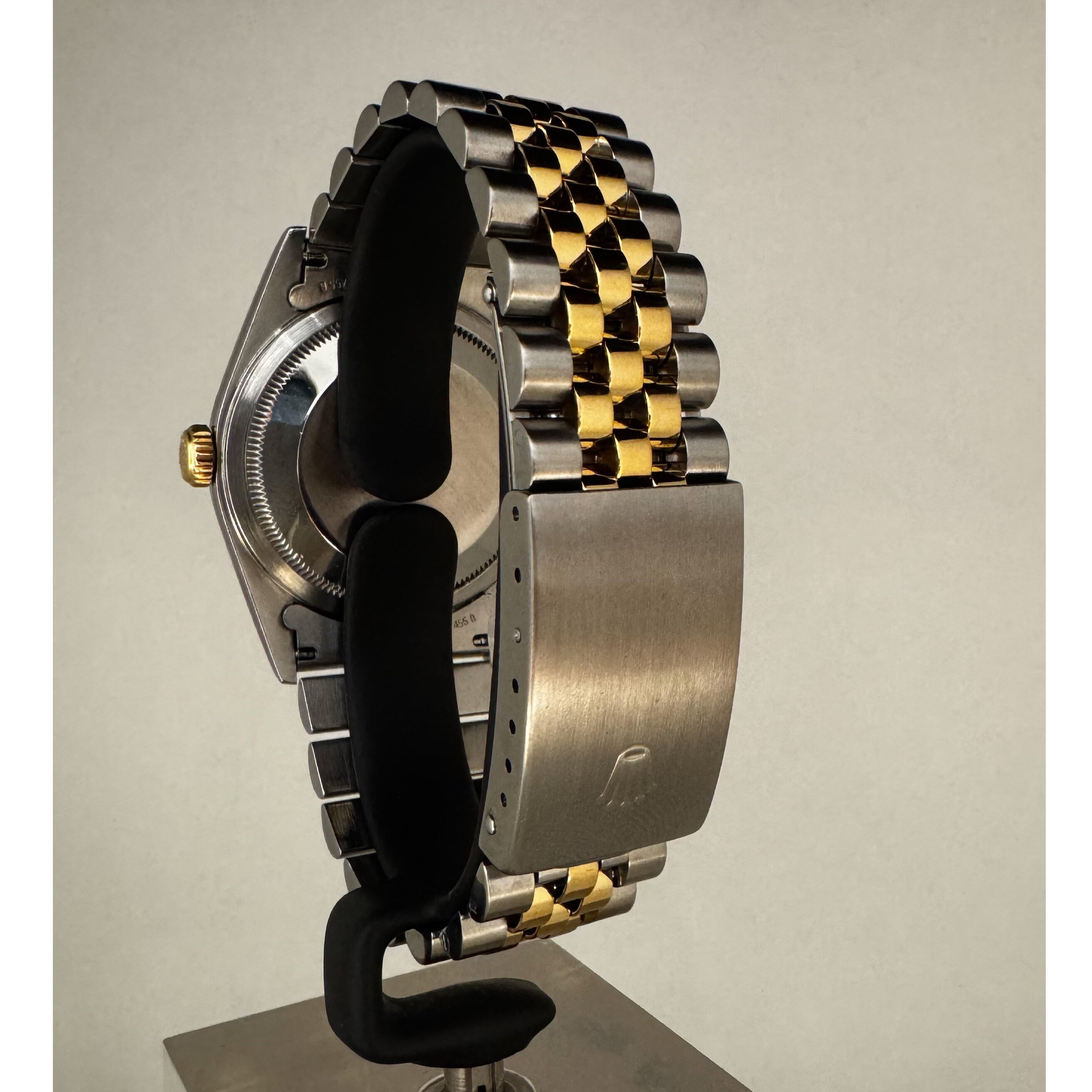 La montre est en bon état général sur son bracelet jubilé Rolex en or et acier légèrement détendu.