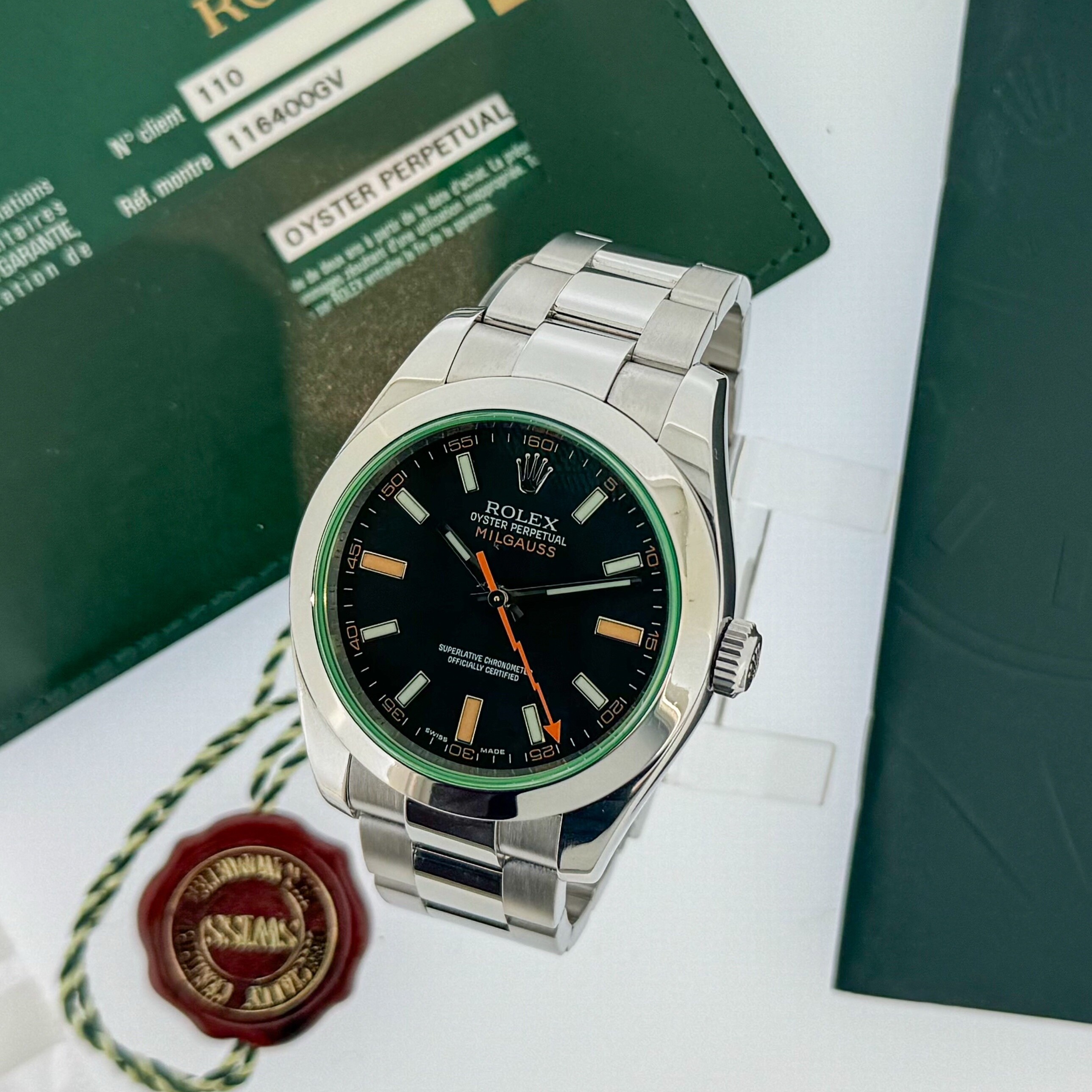 Berenger.fr vous présente montre d'occasion sur Marseille de la marque Rolex modèle Milgauss GV en acier de taille de boitier 40 mm, référence: 116400GV.