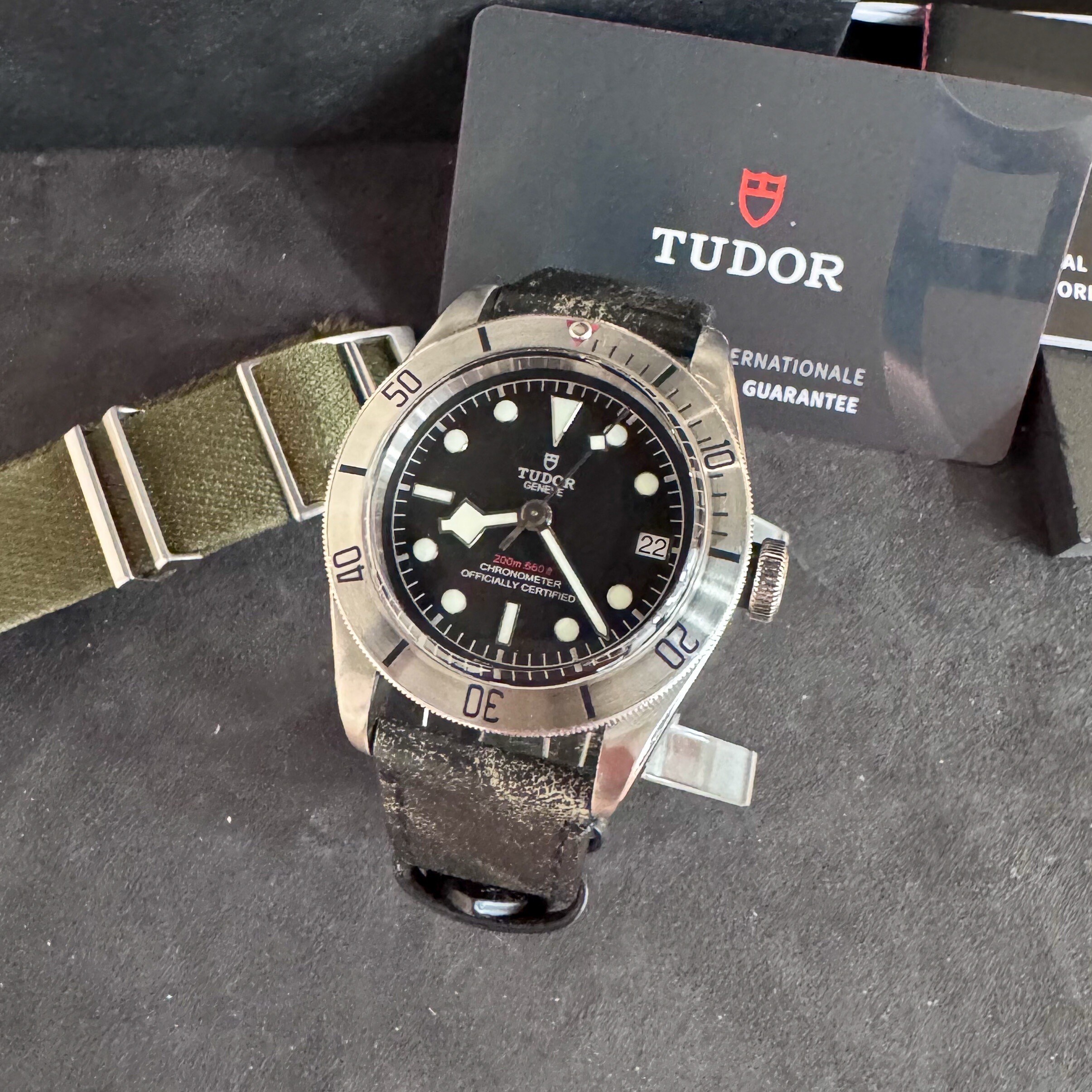 La montre est en bon état général sur son bracelet en cuir vielli sur sa boucle déployante en acier + un nato Tudor.