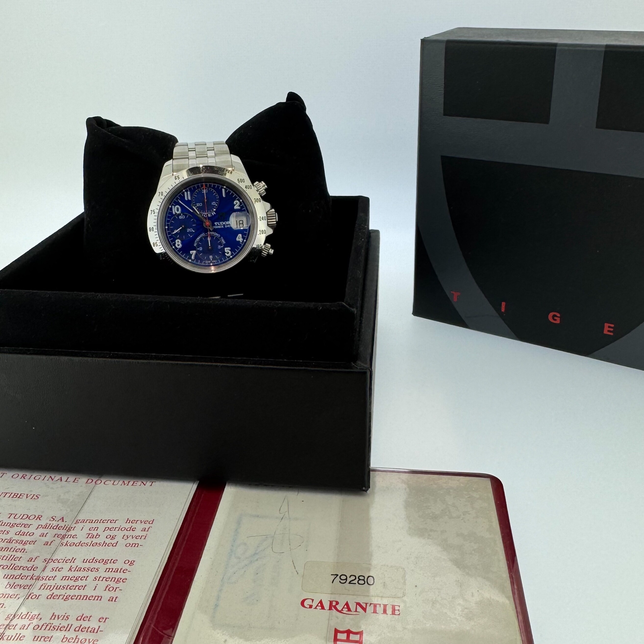 Elle est livrée avec sa boite et ses papiers d'origine Tudor du 12/1999.(Le packaging et tous les accessoires livrés avec la montre sont ceux présents sur la photo uniquement.).